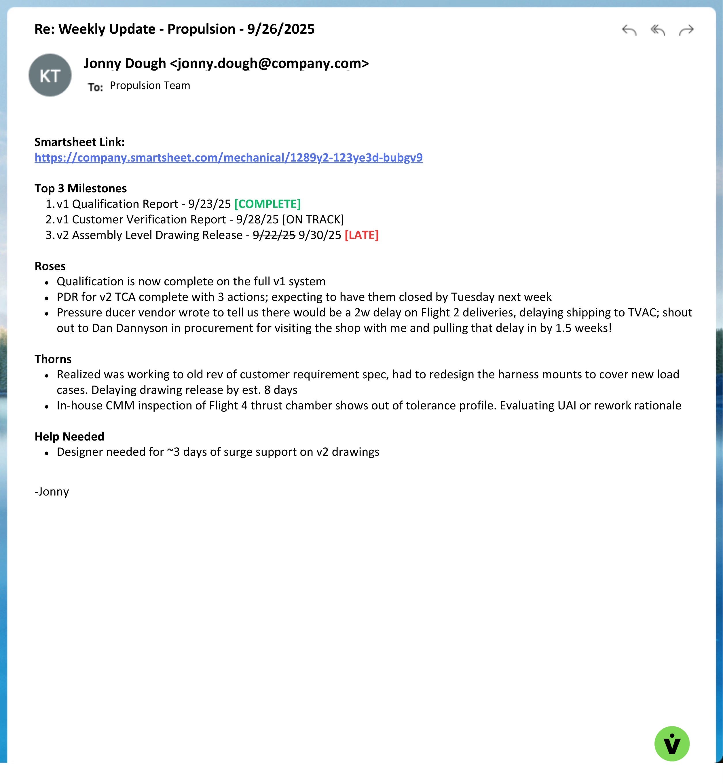 These can be sent via email threads, Slack thread, Notion / Confluence pages — wherever it is your team communicates best.